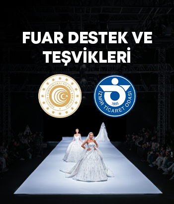 IF Wedding Fashion İzmir 2026’ya katılan firmalar boş zemin ve stant kurulum giderleri için Bakanlıkça metrekare başına 3.900 TL, toplam 392.446 TL’ye kadar %50 devlet desteğinden faydalanabilmektedir.